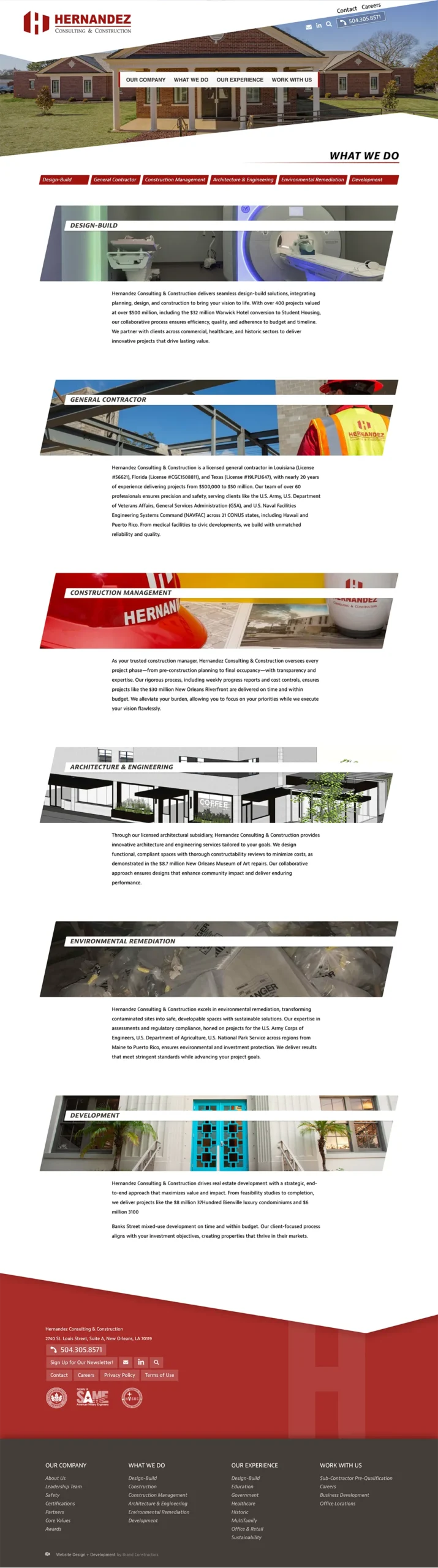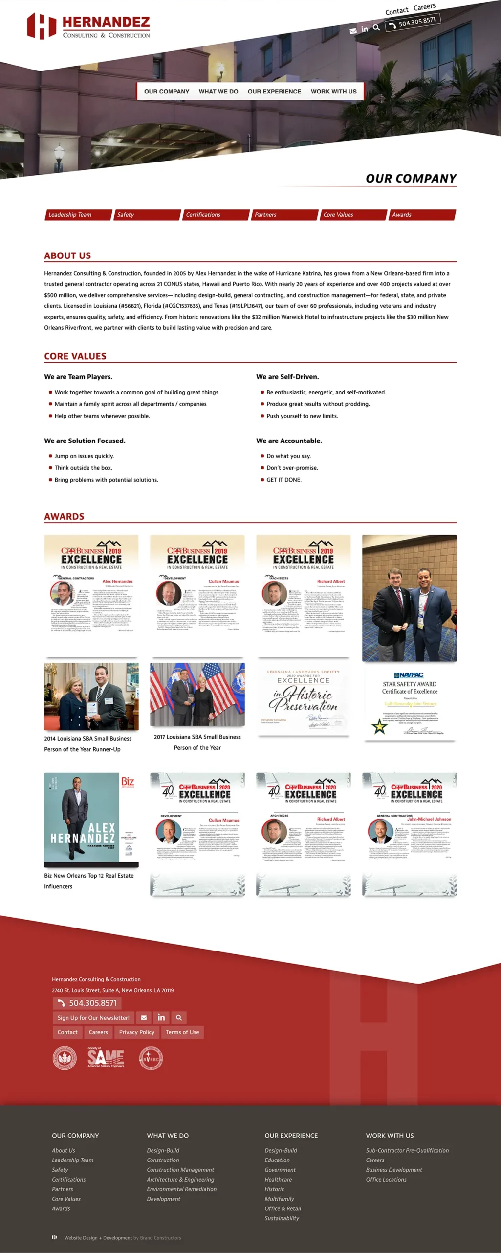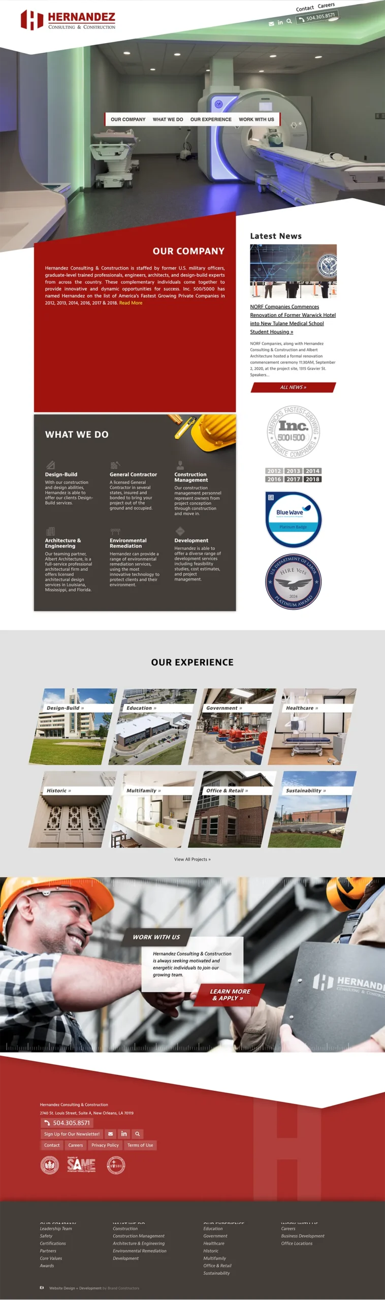 Hernandez Consulting & Construction was founded in 2005 during the aftermath of Hurricane Katrina and has continued to grow and evolve as a company, leaning into their vision to “build great projects for a better future.” As their company expanded, prospects and internal team members noticed that their high-level work and success weren’t matching up to their online presence. Enter: The BrandConstructors.