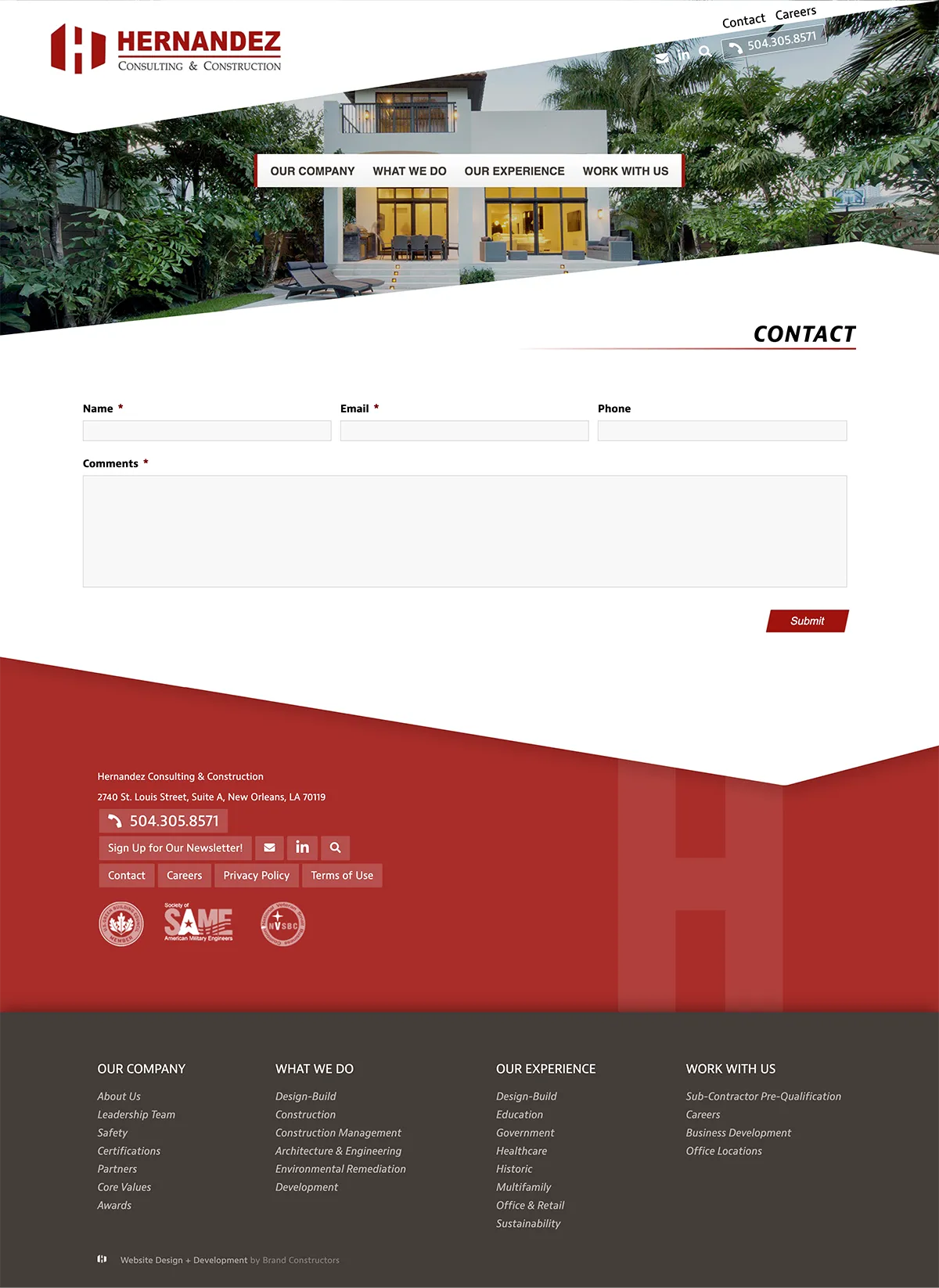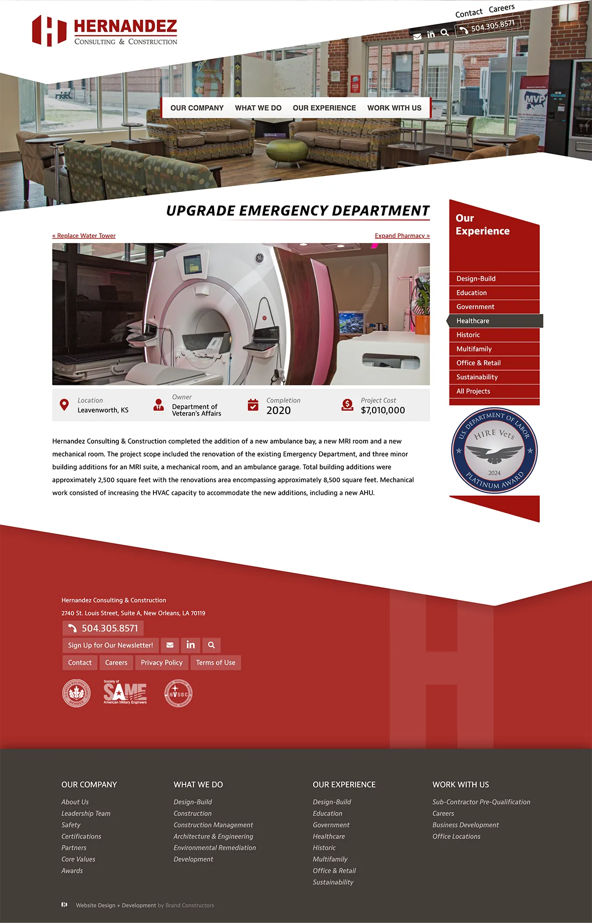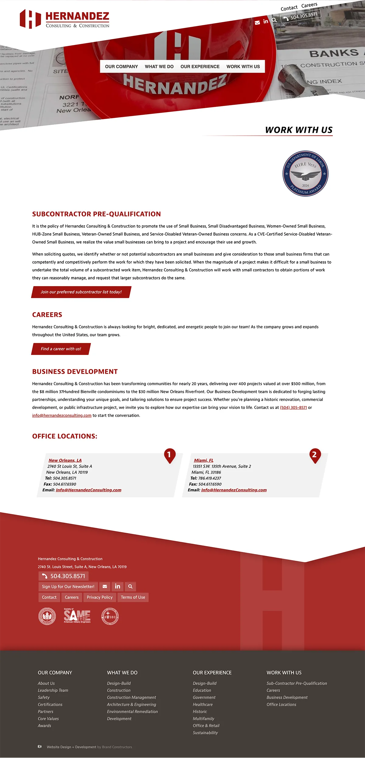Hernandez Consulting & Construction was founded in 2005 during the aftermath of Hurricane Katrina and has continued to grow and evolve as a company, leaning into their vision to “build great projects for a better future.” As their company expanded, prospects and internal team members noticed that their high-level work and success weren’t matching up to their online presence. Enter: The BrandConstructors.