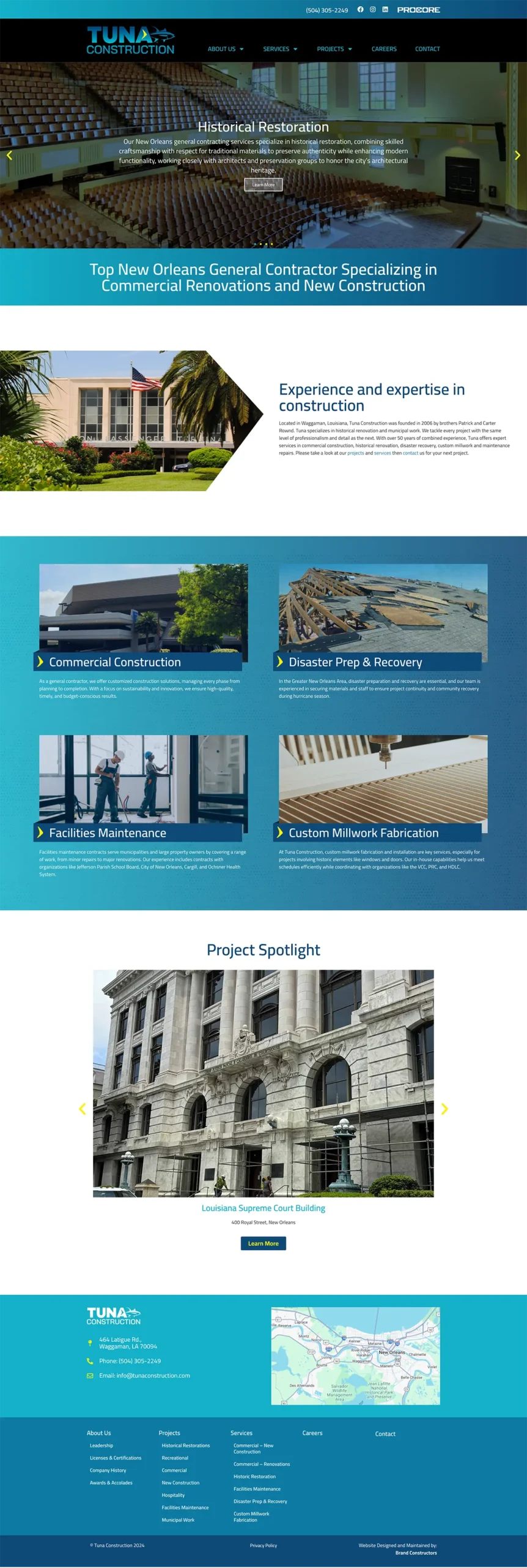 At Brand Constructors, we partnered with Tuna Construction to rebuild their brand from the ground up — the same way they approach every construction project: with precision, craftsmanship, and pride. Our goal was to capture their legacy of quality construction and deep New Orleans roots through a cohesive visual identity and online experience.